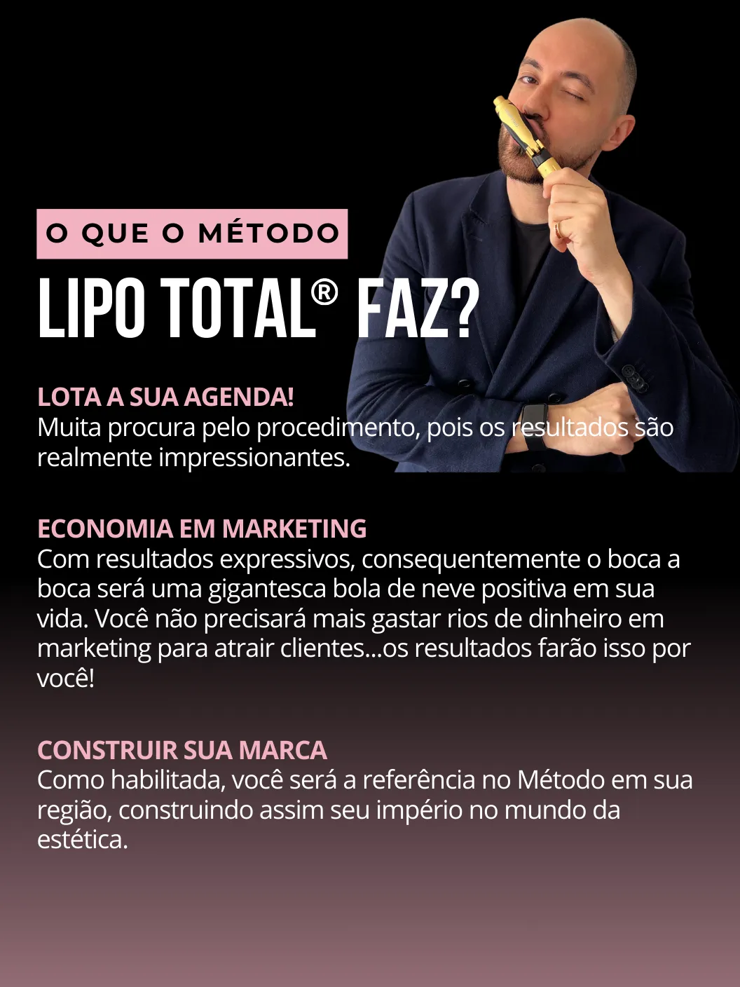 Você adquire agora o acesso ao curso MÉTODO LIPO TOTAL com condição especial de R$ 497 e tem 7 dias para avaliar.