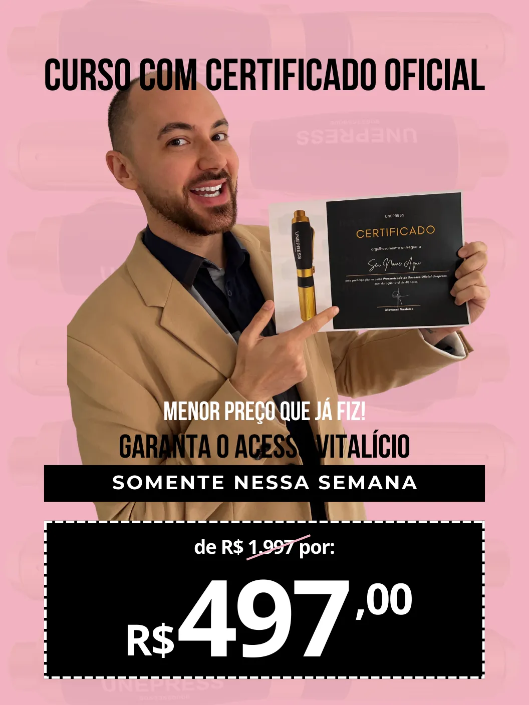 VALOR PROMOCIONAL SOMENTE NESSA SEMANA. O investimento no curso é de R$1.997 por R$497 à vista ou 12x R$47.